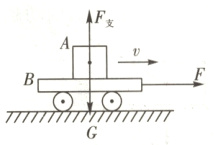 4. 如图所示,货物$A$随小车$B$一起向右做匀速直线运动,请在图中画出货物$A$所受力的示意图。