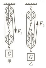 8. (科学思维$)(2023·$阿坝州)某实验小组分别用如图所示的甲、乙两个滑轮组(每个滑轮等重),在相同时间内把重物$G$提升相同高度,$F₁$和$F₂$大小相等,不计绳重及摩擦,下列说法正确的是 ( )