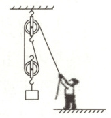 17. 用如图所示的滑轮组匀速提升重为400 $N$的物体,人对绳的拉力为250 $N$,不计绳重及摩擦,滑轮组的机械效率为______。如果人的重力为550 $N$,向下匀速拉动绳子过程中(绳始终未断裂),使用此滑轮组能提升的最大物重为______ $N$。