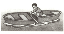 23. 如图所示,小刚坐在小船上,用力推另一艘小船,把另一艘小船推开,他自己坐的船会不会动?为什么?