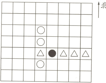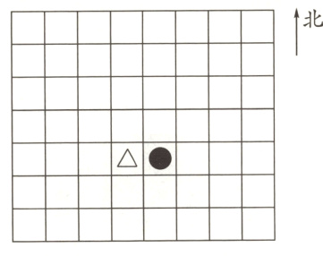 (2)请在△的南面画一个〇,在△的北面画两个〇。