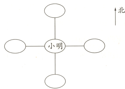 坐在小明北面的是小刚,坐在小明南面的是小红,小玲坐在小明的东面,小亮坐在小明的西面。