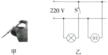 B.如图乙,若闭合开关后灯不亮且试电笔接触插座左右两孔都发光,则零线断路