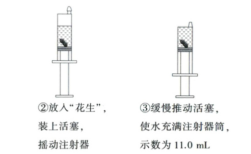 (2)因“花生”体积较小,选择分度值更小的注射器来测“花生”体积。其步骤如下图,步骤②中摇动注射器的目的是:____。