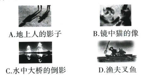 3.[2024陕西]中国古诗词不仅文字优美、意境高远,还蕴含着丰富的科学知识。下列四幅图与诗句“掬水月在手,弄花香满衣”涉及的光现象相同的是 ( )