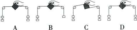 10.[2024江苏苏州]如图所示,大小适中的实心木球,球面有两个小孔在某条直径的两端,两孔在球内相通。用一根比孔细的绳子穿过两孔,在竖直方向上用手拉绳的两端,球会静止在绳上,减小拉力球会向下运动。对此现象下列说法正确的是 ( )