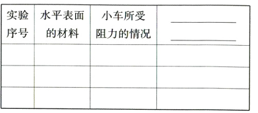 (1)每次均将同一小车从同一斜面同一高度由静止释放,让其分别在不同水平表面上运动,如图甲所示,请完成表格设计。
