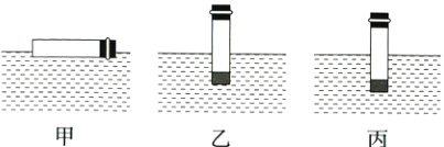 (2)为使自制的密度计竖立在水中,小明在玻璃管内装入密度较大的液体,当密度计竖立在水中时,密度计的重心与浮心重合,如图乙所示。测得此时密度计浸在水中的长度为0.4L,计算此时密度计所受浮力的大小。