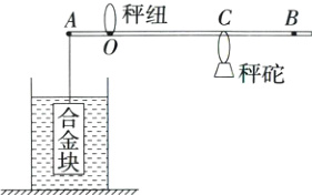 6.[2024海南模拟]如图是创新科技小组用轻质杆设计制作的测量液体密度的工具−密度秤。其中经防腐处理的合金块质量为0.8kg,体积为10⁻⁴m³,秤砣重2N,秤纽O处到A端长10cm。测量时手提着秤纽将密度秤的合金块浸没在待测液体中(不接触容器),调节秤砣位置,使秤杆AB在水平位置平衡,此时秤砣悬挂处的刻度值为待测液体密度。(g取10N/kg)