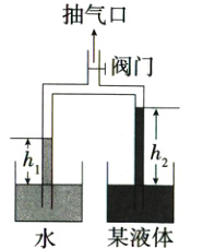 8.[2024广西模拟]某物理兴趣小组尝试用刻度尺测量某液体的密度:如图所示,将带有阀门的“U"形管竖直倒置,两个管口分别插入盛有水和待测液体的烧杯中;打开阀门,从抽气口抽出适量的气体,待两管中的液面升高到一定高度时,关闭阀门,测量出管内外水面的高度差h1=7.2cm、待测液面的高度差h2=8.0cm,若当时外界大气压为p0,实验中“U"形管内的气体压强为p,则p0________p(选填“>”“=”或“<"),待测液体的密度为ρ液=________kg/m³。