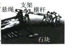 C 解析:支架下垫底面积较大的石块是通过增大受力面积的方式减小支架对地面的压强,A错误;该横杆可以看作一个杠杆,由图可以看出,支架靠近悬绳一侧,动力臂大于阻力臂,根据杠杆平衡条件可知,该杠杆是省力杠杆,省力费距离,B错误;根据杠杆平衡条件可得,通过减小阻力臂或增大动力臂的方法可达到更省力的目的,因此当巨木太重无法抬起时,可以减小悬绳与支架间的距离或让杠杆右端的人远离支架,C正确,D错误。