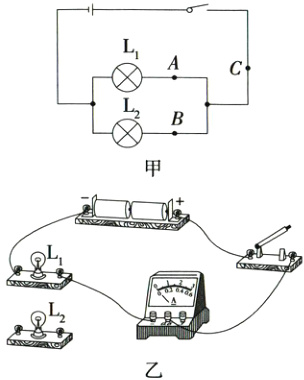 (1)请根据图甲中的电路图,用笔画线代替导线将图乙中的电路连接完整,使电流表测量流过小灯泡L₁的电流。连接电路时应________开关。