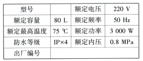 解析:由图可知电热水器的额定电压为220V,额定功率为3000W,额定容量为80L。
