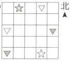 (2) ▽先向北跳2格,再向东跳4格后的位置如图所示。请画出▽移动前的位置。