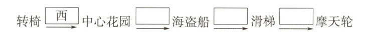 (2)毛毛从碰碰车处去坐海盗船,可以先向( )走到中心花园处,再向( )走到海盗船处;也可以先向( )走到摩天轮处,再向( )走经过滑梯到海盗船处。