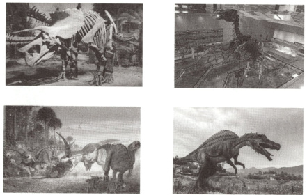 (1)示例:恐龙生活的时代,地面上有大量的植物,树木参天,恐龙在树林中穿行。恐龙的种类很多,天上有展翅飞翔的恐龙,地面上有大型食肉恐龙和更大的食草恐龙,到处呈现出生机勃勃的景象。