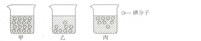 (2)甲、乙、丙三位同学分别画出下面的示意图,表示溶液中碘分子的分布(汽油分子没有画出)。