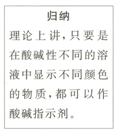 【拓展】紫甘蓝、月季花和牵牛花的汁液在中性、酸性和碱性溶液中的颜色变化较明显,都可以用作酸碱指示剂。