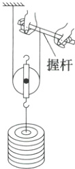 (2)动滑轮下挂着两个杠铃片,握杆对绳子拉力的大小;