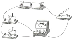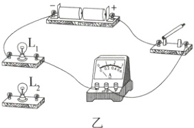 (1)请根据图甲中的电路图,用笔画线代替导线将图乙中的电路连接完整,使电流表测量流过小灯泡 L₁ 的电流。连接电路时应_______开关。