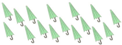 (3)答案不唯一,如:如果每4把伞摆一个美丽的伞花,那么可以摆几个伞花?$16\div4 = 4$(个)