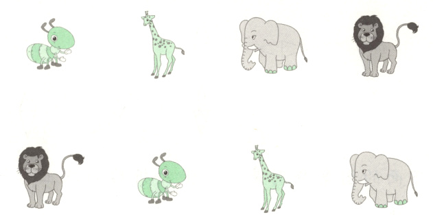 5. 下面哪些小动物通过平移可以互相重合? 用线连起来。