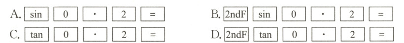 B [解析]$\sin A=\frac{10}{50}=0.2$,所以用科学计算器求这条斜道倾斜角的度数时,