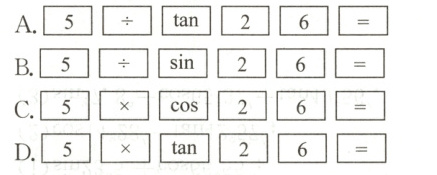 4. 如图,在△ABC中,∠ACB=90°,∠ABC=26°,BC=5. 若用科学计算器求边AC的长,则下列按键顺序正确的是( )