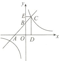5. 如图,一次函数$y = x + k(k>0)$的图象与$x$轴和$y$轴分别交于点$A$和点$B$,与反比例函数$y=\frac{k}{x}$的图象在第一象限内交于点$C$,$CD\perp x$轴,$CE\perp y$轴,垂足分别为点$D$,$E$。当矩形$ODCE$与$\triangle OAB$的面积相等时,$k$的值为______。