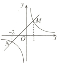 D 【解析】由一次函数和反比例函数的图象可知,当一次函数图象在反比例函数图象之上时,所对应的x的取值范围为−2<x<0或x>1,故选D.