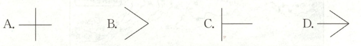 7.(新疆)如果把长江比作“箭”,把东部沿海地区比作“弓”,以下表示长江三角洲地理位置的示意图是 ( )