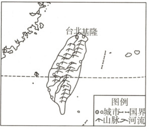 A 解析:由图可得,北回归线穿过台湾岛的中部,所以A正确。台湾岛以山地为主,中部东部为山地,西部为平原,河流主要自东向西流,所以B错误。台湾岛隔台湾海峡与福建省相望,所以C错误。台湾岛人口城市多集中分布在西部平原,所以D错误。