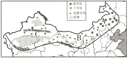 A. 沿A→B→C方向,植被依次是荒漠、荒漠草原、草原