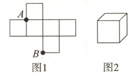 3. 如图1是边长为1的六个小正方形组成的图形,它可以围成图2的正方体,则图1中小正方形顶点A,B在围成的正方体上的距离是( )