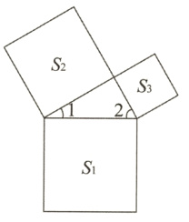 8. 如图,三个正方形的面积分别为$S_{1}=3,S_{2}=2,S_{3}=1$,则分别以它们的一边为边围成的三角形中,$\angle 1+\angle 2=$________度.