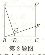 2. 如图,在正方形ABCD中,点E,F分别在边BC,CD上,且BE=CF. 连接AE,BF,AE与BF交于点G. 下列结论错误的是( )