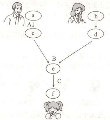 (2)A表示父母分别产生生殖细胞的过程,生殖细胞c、d分别叫______和______,它们的染色体数目均为______,比a、b减少______。