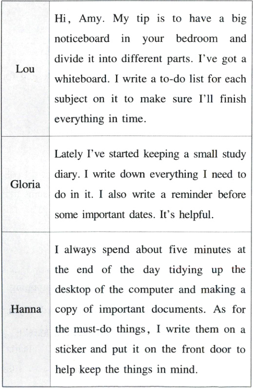 I have always admired students who hand their homework in on time and never forget anything important.Me,on the other hand...I'm terrible at getting myself organized!The following tips are from my friends.