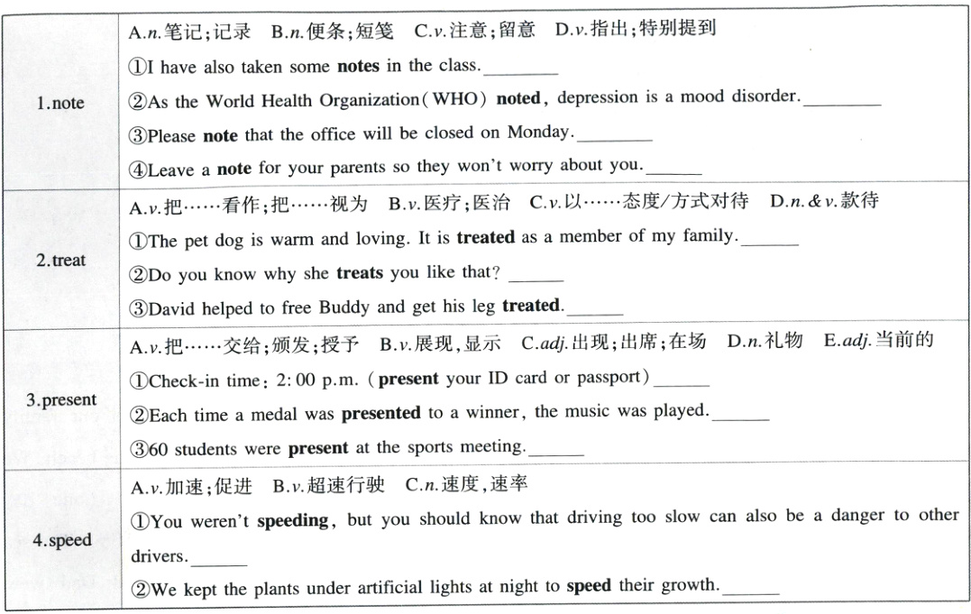 根据句意,在横线处选择加粗单词所体现的释义。