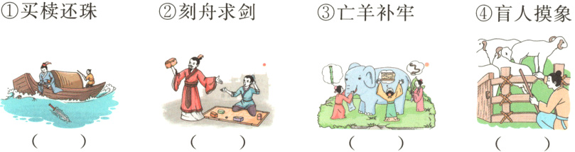 六、同学们搜集了一些图片,请你先为图片选择相对应的寓言故事,再为相对应的道理选择故事名称。(填序号)