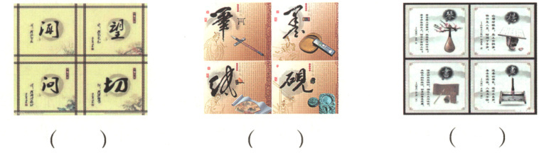 四 明明同学想向外国笔友介绍中国优秀传统文化,请你帮他选出每组图片表达的内容,将序号填在括号里。