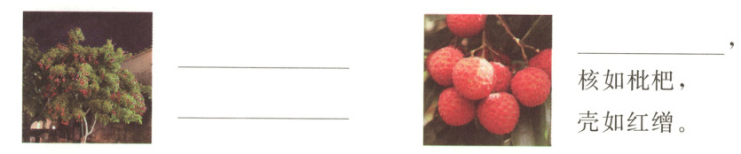 解析:第1张图片描述的是从整体看到的荔枝树的形态,故而可找到“树形团团如帷盖”;第2张图片描述的是荔枝果实的样子,根据提示,可找到“朵如葡萄”。