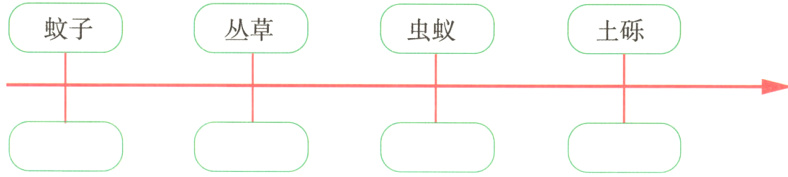 在低洼的土墙边,在杂草丛生的花台边,我常常蹲下自己的身子,使身体和花台一样高,凝神细看。我把繁茂的杂草当作树林,把昆虫蚂蚁当作野兽,把泥土瓦砾凸出的地方当作土山,把低洼的地方当作山沟,想象在里面游历的情景,感到心情舒畅。