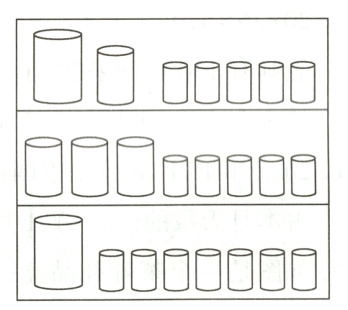 提示:由题图第1行和第3行的圆柱可知,1个中圆柱的质量 = 2个小圆柱的质量;由第1行和第2行的圆柱可知,1个大圆柱的质量 = 2个中圆柱的质量。