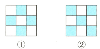 3. 下图中,图①涂色部分表示4个( ),图②涂色部分表示( )个$\frac{1}{9}$,它们合起来是( )个( ),也就是( )。