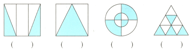 4. 写出下面各涂色部分占整个图形面积的几分之几。