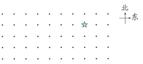 3. 小明在一个公交站台等待公交车,公交车从首发站开始,先向北行驶了1站,又向东行驶了4站,然后向东北方向行驶了2站,就到了小明现在的公交站台$(☆$处),请圈出公交车一开始的位置。$(·$表示站点)(8分)
