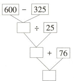 275 11 87 (600 - 325)÷25 + 76 = 87 567 63 9 (328 + 239)÷(34 + 29) = 9