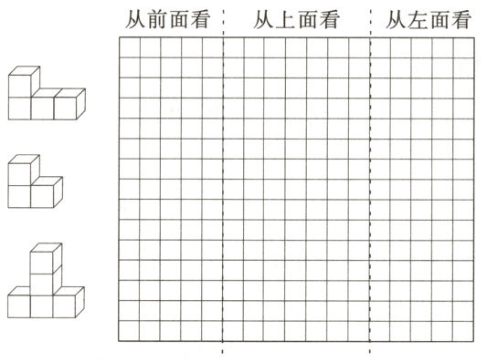 4. 在方格纸上画出左面几何体从前面、上面和左面看到的图形。(9分)