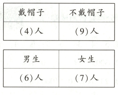 4. 请你根据不同的分类标准对下图进行统计。(8分)